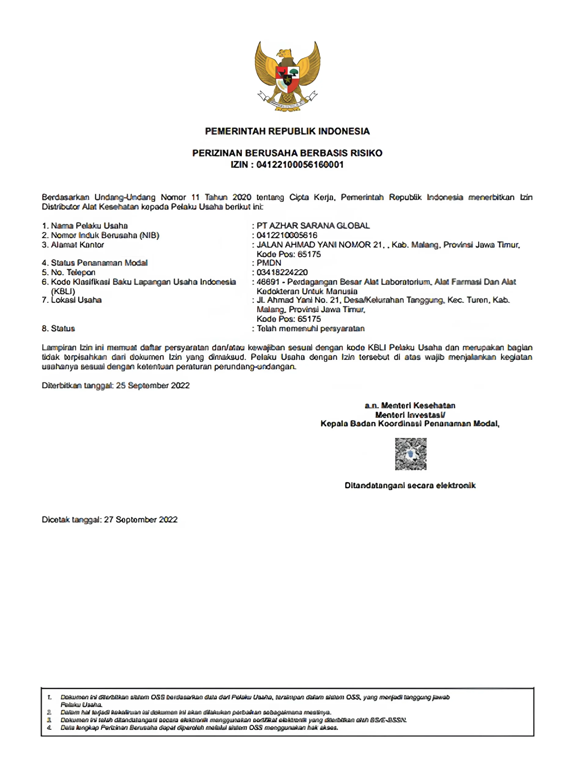 Azhar Sarana Global merupakan perusahaan yang bergerak dalam distribusi alat kesehatan Bahan Medis Habis Pakai (BMHP) antara lain seperti Disposable Respiratory, Anesthesia, Hemodialysis, Disposable Surgery dan lain-lain. Berdiri di Malang, Jawa Timur Indonesia pada tahun 2019, yang sudah memenuhi perijinan Sertifikat CDAKB untuk perusahaan distributor alat kesehatan